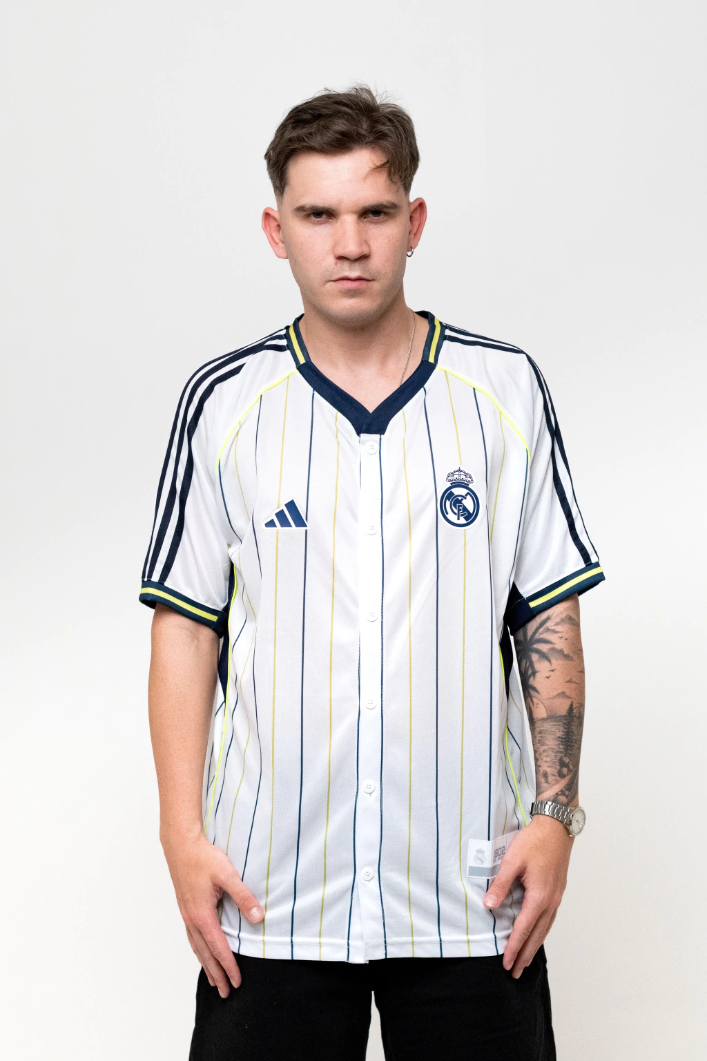 Camisa estilo baseball de Boca Juniors, con rayas azules sobre base blanca y detalles en amarillo. En el frente lleva el escudo de CABJ y el logo Adidas, mientras que en la espalda se destaca la inscripción CABJ. Una prenda distinta para los hinchas que quieren combinar moda urbana con el amor por el Xeneize.